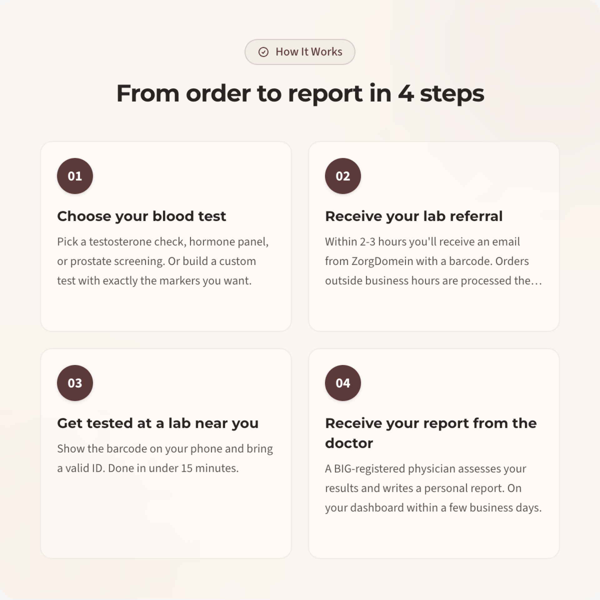 Within 2-3 hours you'll receive an email from ZorgDomein with a barcode. Orders outside business hours are processed the next business day.